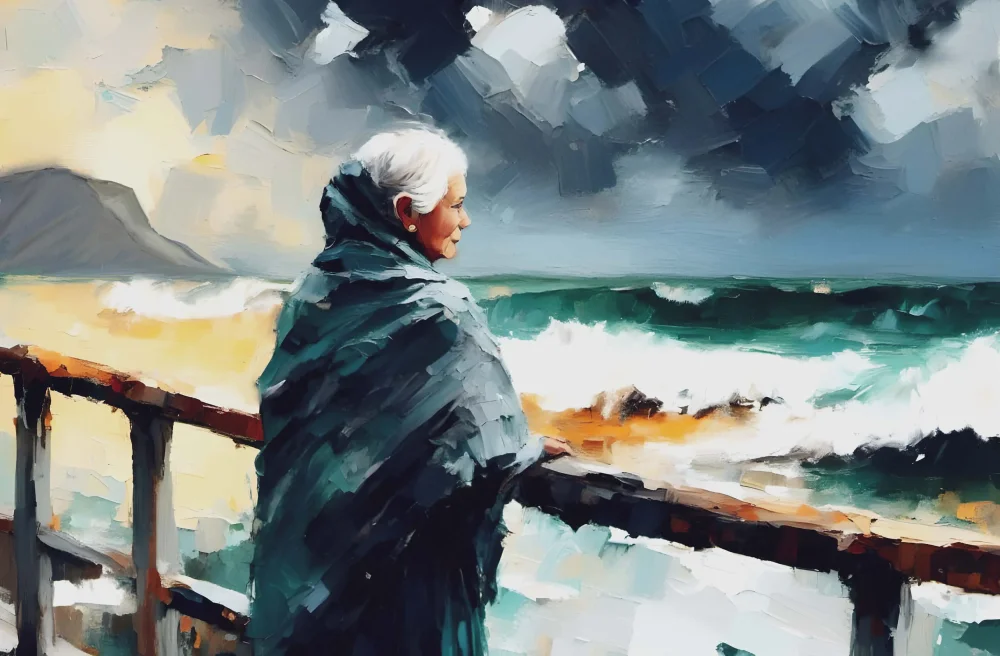 The woman sits in front of the computer, taking a moment to contemplate the grey ocean visible from the windows. The Irish waves, livid and boiling with rage, bring back...