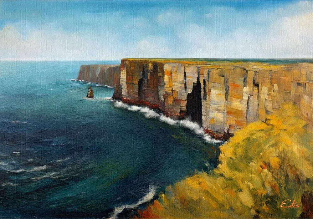 The Cliffs of Moher are stunning sea cliffs located on the western coast of Ireland in County Clare. Rising dramatically to heights of up to 214 meters (702 feet) above the At...