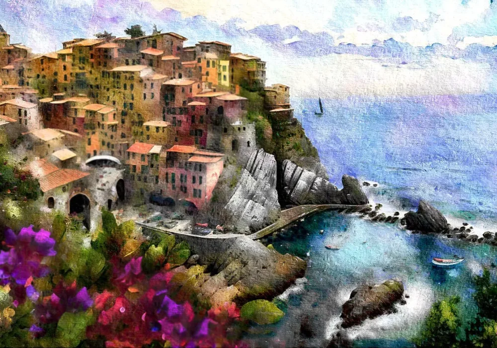 Manarola, built on a high rock 70 metres above sea level, is one of the most charming and romantic of the Cinque Terre villages. The tiny harbour features a boat ramp, a tiny piazza and picturesque multicoloured houses facing the sea.